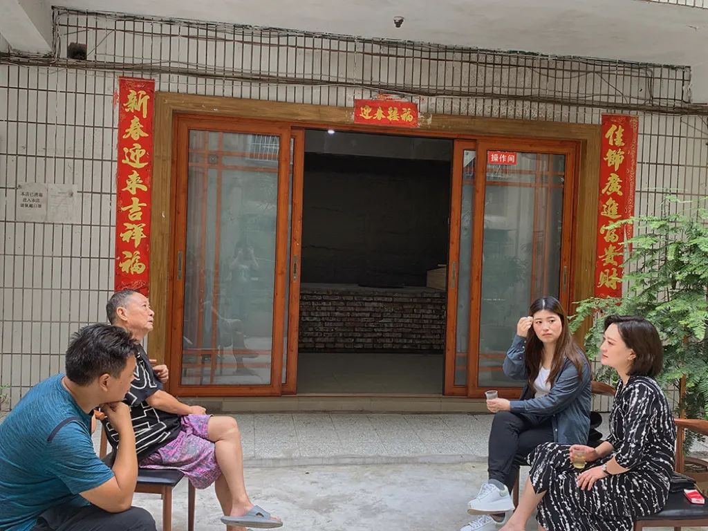 如今因为姑伯父辈年事已高,这爬坡上坎的老路很难走上来,我们也逐家逐家的搬到小区中,但是老宅还在伯伯的照护下保留着生活的气息。老宅不仅是我们生活的地方,还是姑伯父辈也一起开店卖米皮时候的原料加工后厨,奶奶在三十多年前就有了集中生产统一配送的中央厨房概念,这也是能让我们这碗刘二妈米皮得以发展的重要基础,而这一切都与我们这个坐落在市中心山上的老宅息息相关,这个老宅承载了太多关于我们家族的故事,见证了许多关于刘二妈不断进步的样子。韩老师和我们坐在老宅的院坝里,作为炒料手艺传承人的伯伯也徐徐讲解着关于这碗米皮里制作的细节,从选材要求到炒制关键再到出品时间,这所有的一切都透露着时间沉淀后的笃定,经验有时候就是无法完全复制的感觉甚至情感,望望岁月,一不小心就白了头发。
