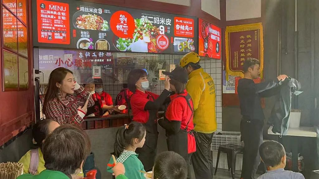 导演让我和姐姐呈现在店里的样子,我们换好工作服,姐姐就走进了操作间开始了熟练的操作,在一个真实的场景里不需要摆拍,接连不断的客人让姐姐自然而然的忙碌起来,我是在兄弟姊妹里最少进店里实操的人,一般就只能干干收碗这样简单的活儿,但是只要走进店里,就能感受到真切生活的气息,熟悉和家常都在这一碗米皮里毫无掩饰的流露。
