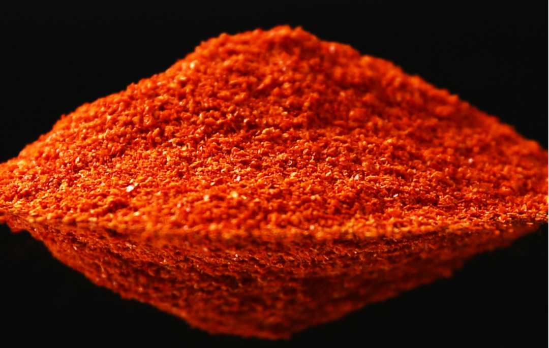 首先,经过数日烘烤好的辣椒捣成粉末,按比例进行配比。