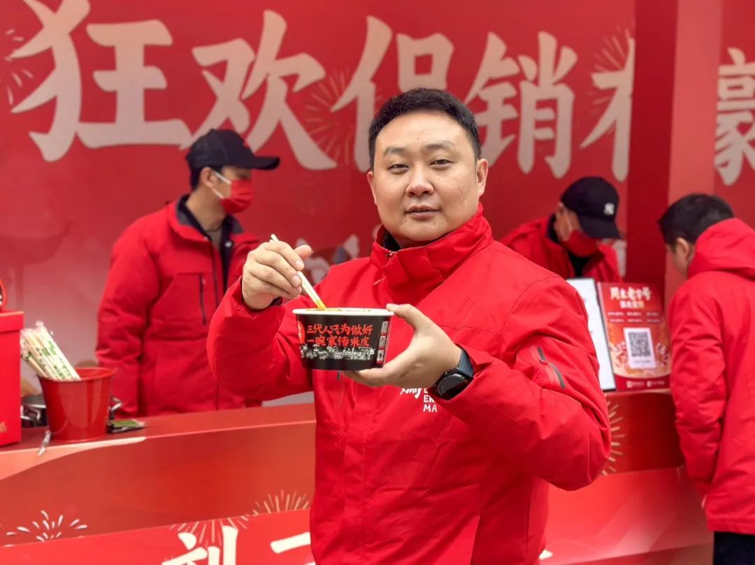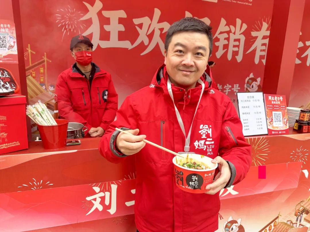 我们刘二妈米皮也在现场摆摊哦,红彤彤的衣服红彤彤的米皮,喜气洋洋。