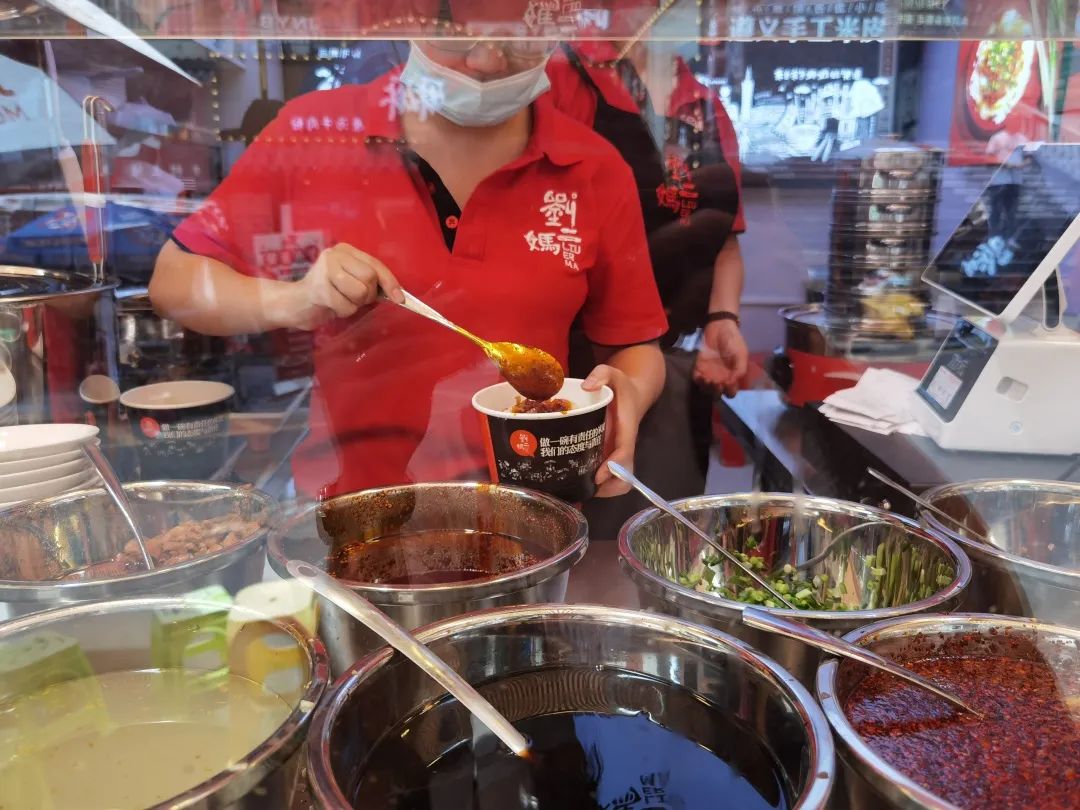 勇烈路皮皮酱可是去过,一个老坡坡上聚集了好多小吃店,老素粉、小砂锅、铁签牛肉等等恨不得一家家打卡,美食街怎么能少得了我们刘二妈米皮呢?