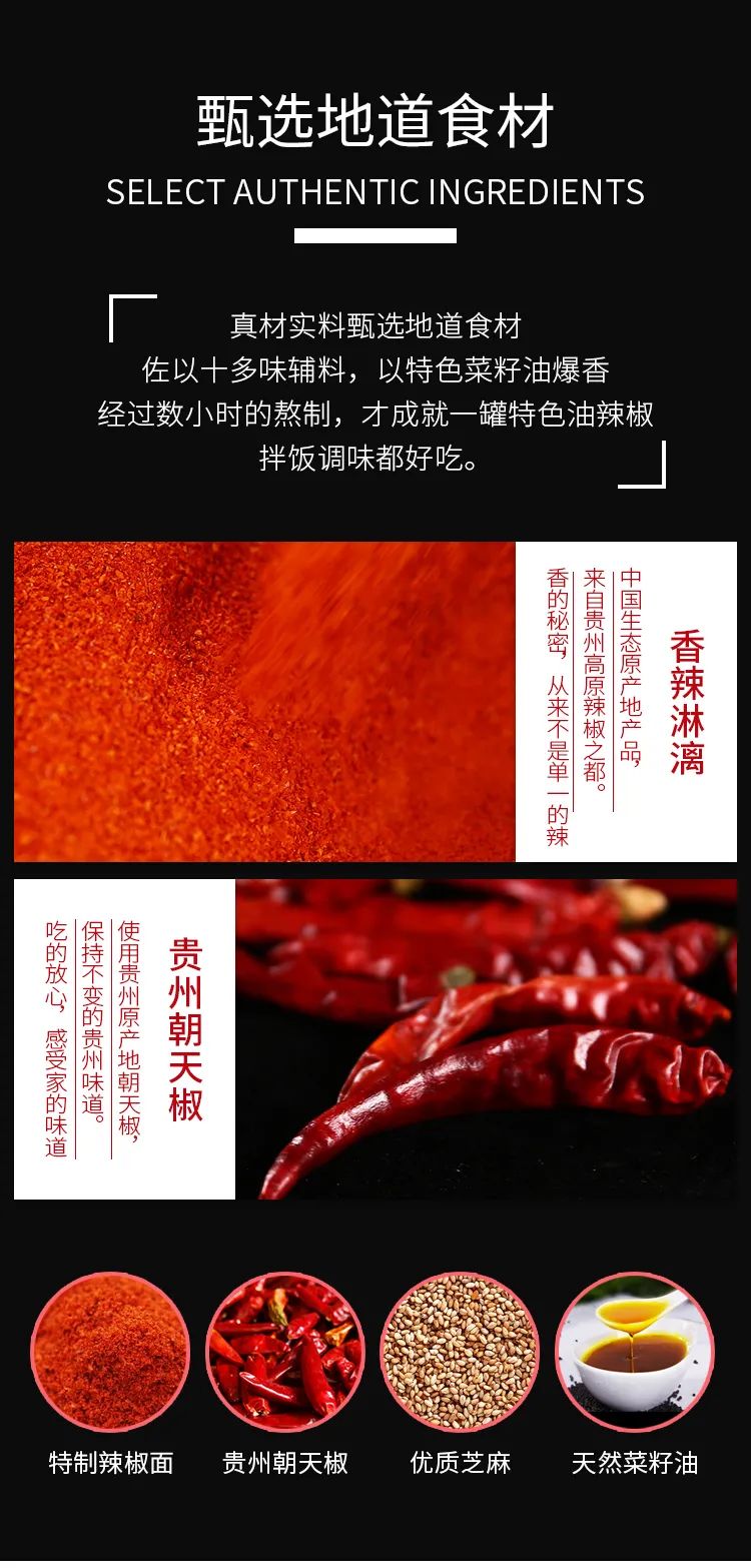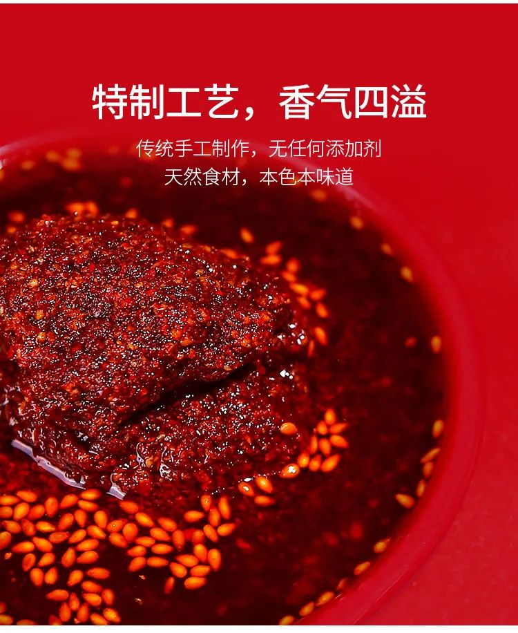 特色油辣椒还是大家熟悉的老味道,采用刘二妈米皮专用的贵州朝天椒秘制而成,香辣淋漓,辣而不躁,地地道道的香辣原汁原味地保留。