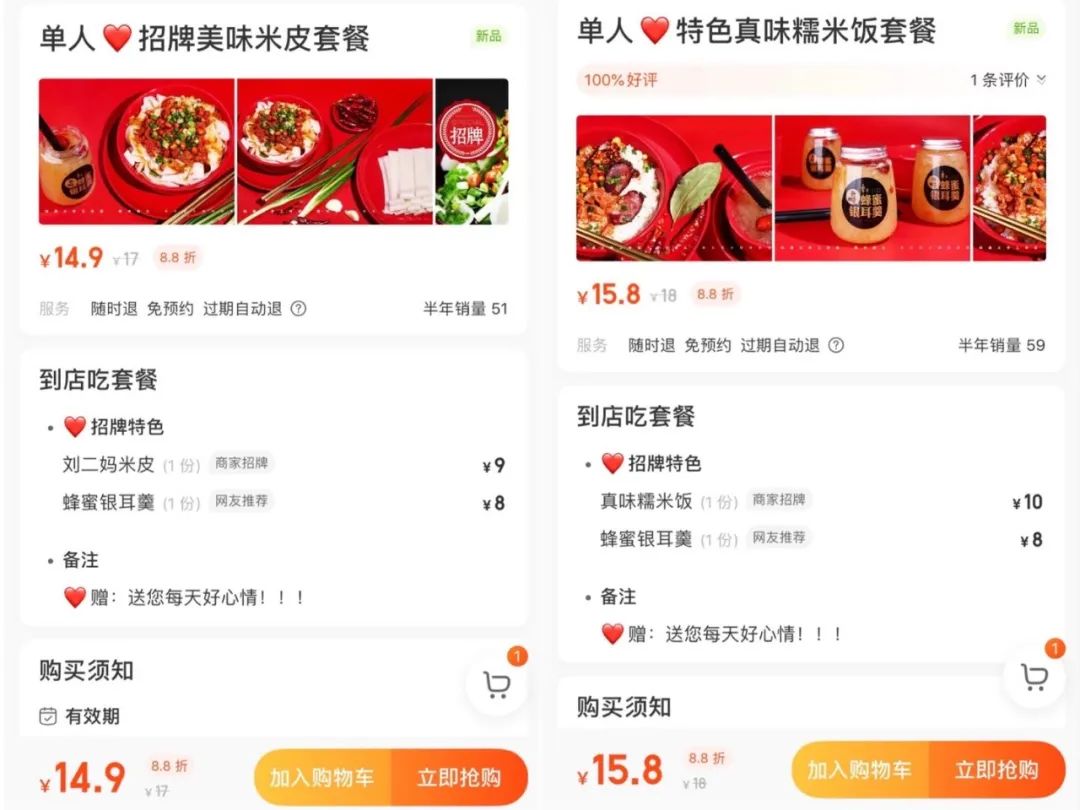 上面这些都属于国民级CP,不过到了我们遵义,那还有:然鹅,大家有所不知,我们刘二妈米皮也有CP,一站式调和你在吃米皮过程中可能遇到的所有感觉:辣、咸、热、油、腻等等等等,神器一搭配,立马就有:满满的幸福感,爽哉。有时候你是不是也会和视频里的这个小姐姐一样,吃着吃着米皮或者糯米饭,想喝点什么?银耳羹就是个不错的选择↓↓刘二妈家的蜂蜜银耳羹是每天现熬制作,除主料优质银耳以外,还有红枣、枸杞,添加了少许蜂蜜,清爽可口,甜而不腻,颜值爆表,绝对是重口味的好拍档。既然组了CP成了套餐,那就意味着——优惠呀!组合下来是88折哦,幸福感和饱腹感都是满满的~超级实惠的组合套餐已经在贵阳的五家门店上线:打开大众APP或美团APP,搜索“刘二妈”就可以在对应门店买到哦。温馨提示:优惠套餐券不通用,大家到对应门店了再购买哦~