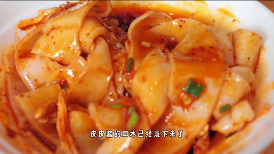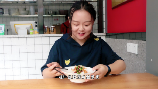 ↑一碗足足半斤洁白软糯的米皮吃起来有米香味还有嚼劲