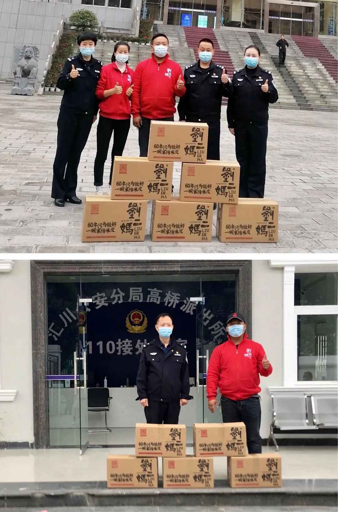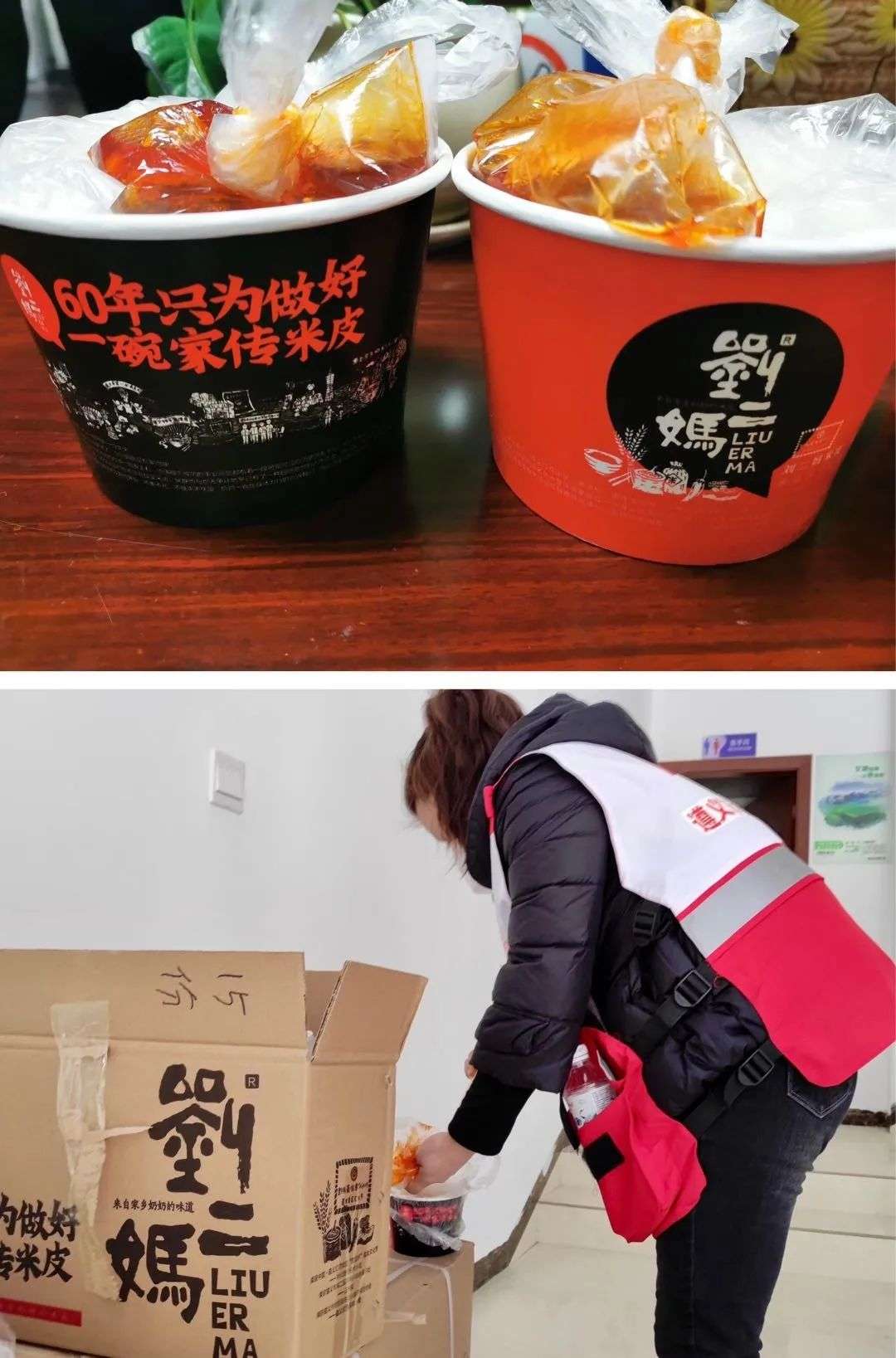 “这是刘二妈米皮专门送来的爱心餐,为刘二妈米皮点赞!”