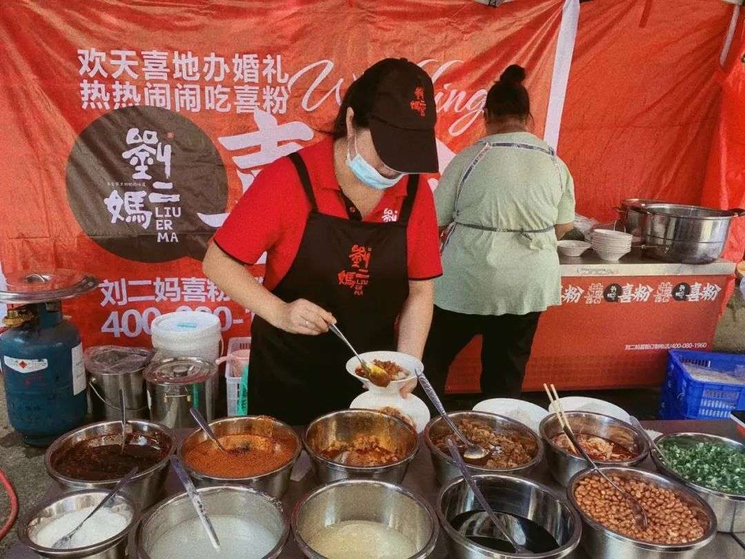 这次又和大家一起跑来嗦喜粉啦!热热闹闹好生欢喜,结婚作为人生中的头等大事之一,得要重视起来。在贵州遵义有个习俗,在正式婚礼的前一天,男女双方会邀请各自的亲朋好友聚到一起吃喜粉,互相先认识一下呀,摆摆龙门阵,吹吹牛啥的,可光摆龙门阵总感觉缺了点啥,口干舌燥喝点水也得要吃点东西吧,这个时候就可以嗦上一碗我们刘二妈家自己的喜粉哟。这不,除了能看见我们现场的制作过程,我们还捉住了一位正在嗦粉的漂酿阿姨,(据说她还是我们家的忠实粉丝呢)一起来瞧瞧吧