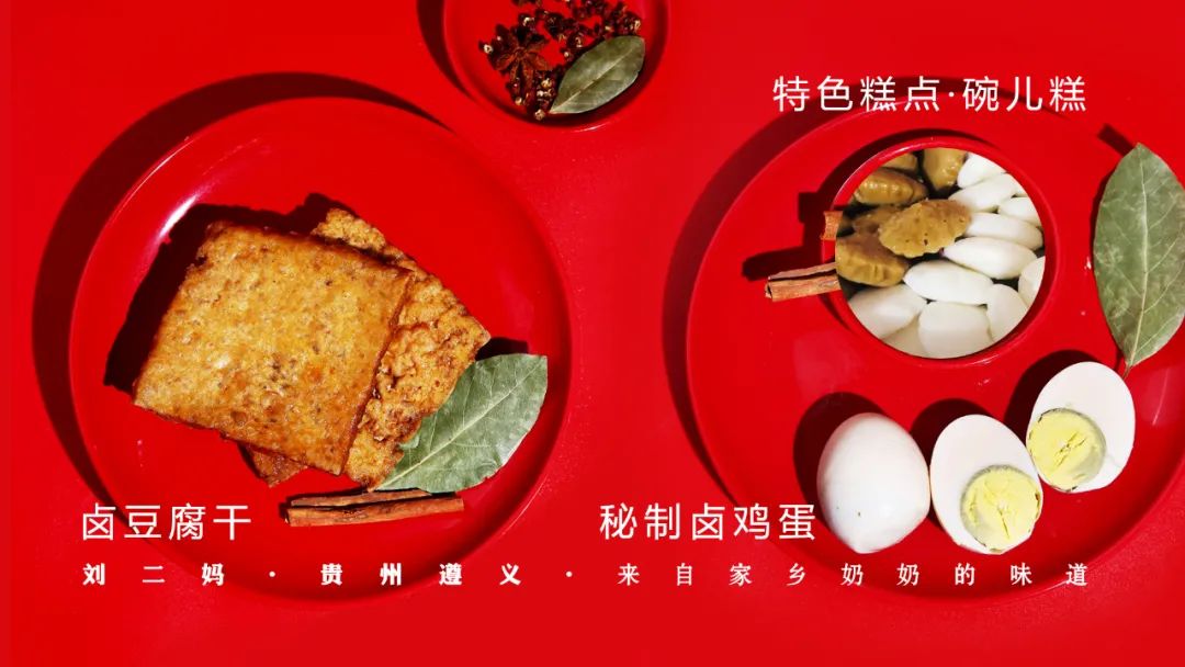 除了主食搭配,还有小食搭配哦,总有一款你喜欢,一碗红油米皮搭配上我们的常客伴侣—卤蛋和豆腐干,简直太巴适了。吃完咸辣的再来上一个本地人从小吃到大的甜点碗儿糕,有没有让你找寻到一丝童年的记忆呢~