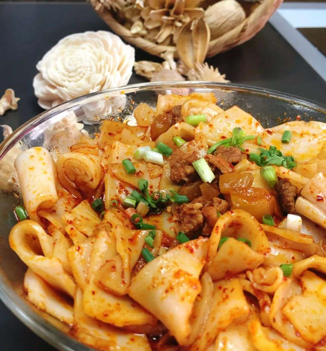 这样,再搭上我们秘制的配料,一碗刘二妈米皮就诞生啦。