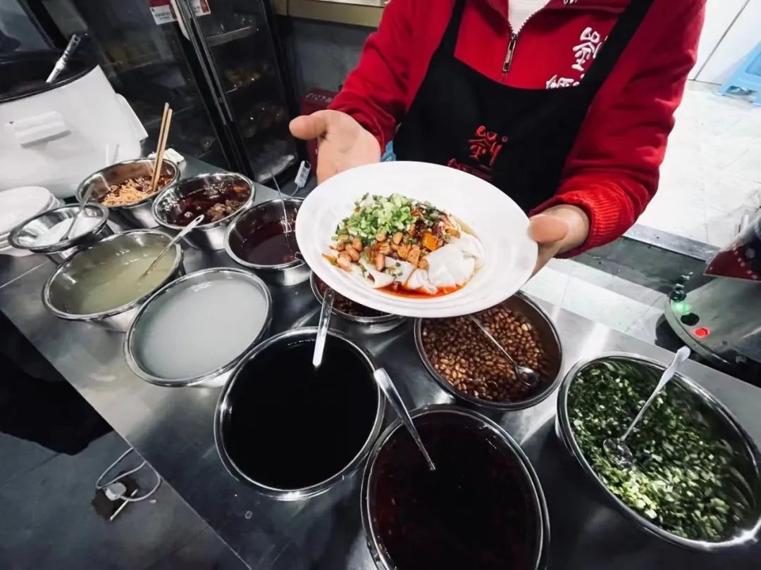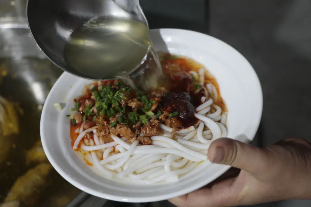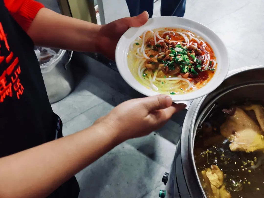 特别提一嘴,喜粉不止有米皮,还有米粉哦,不想吃凉的,热的它也有。(秘制的老母鸡鸡汤,营养养胃还补充胶原蛋白)